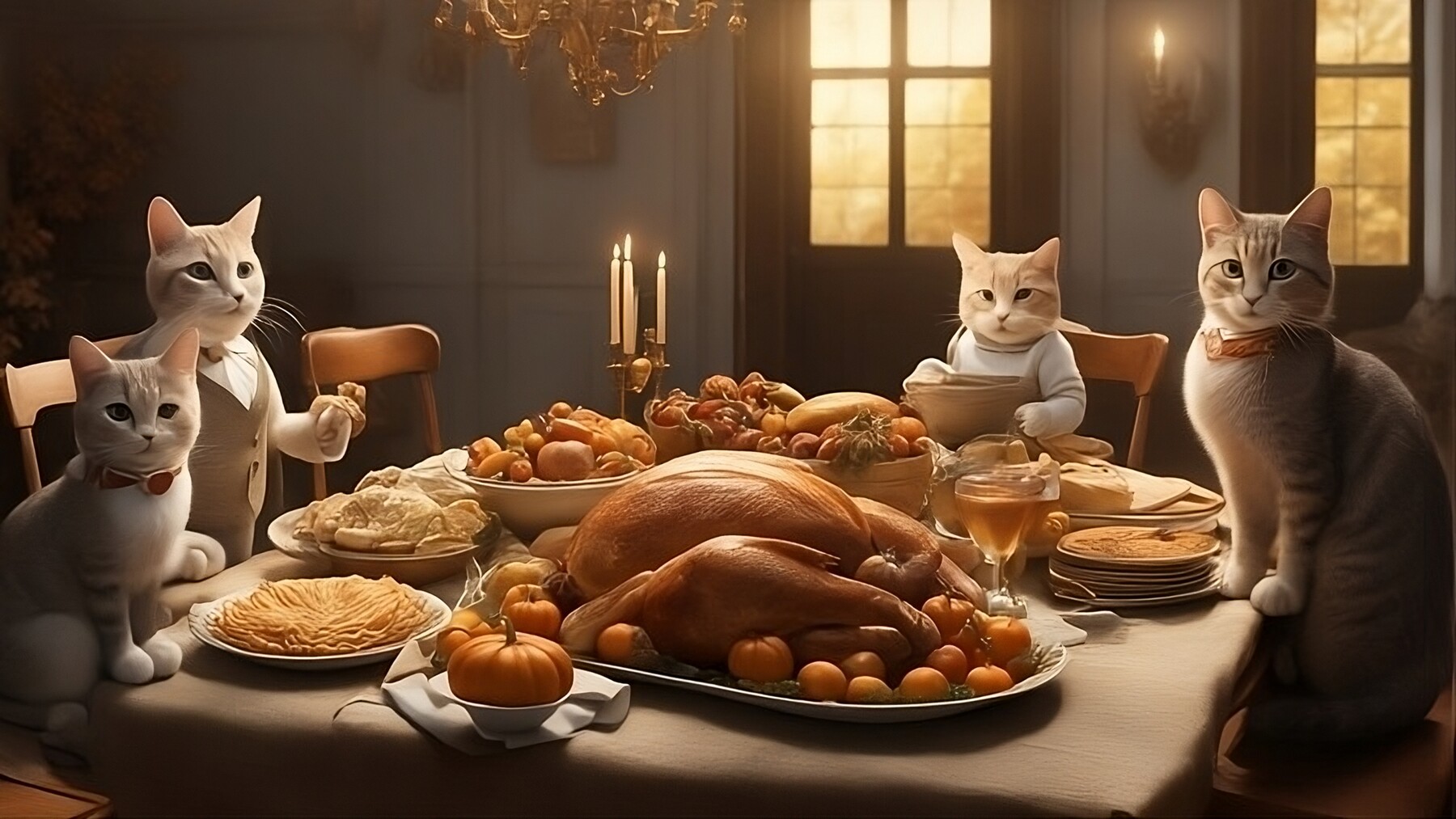 Thanksgiving feast, although they probably were. The cats had worked hard